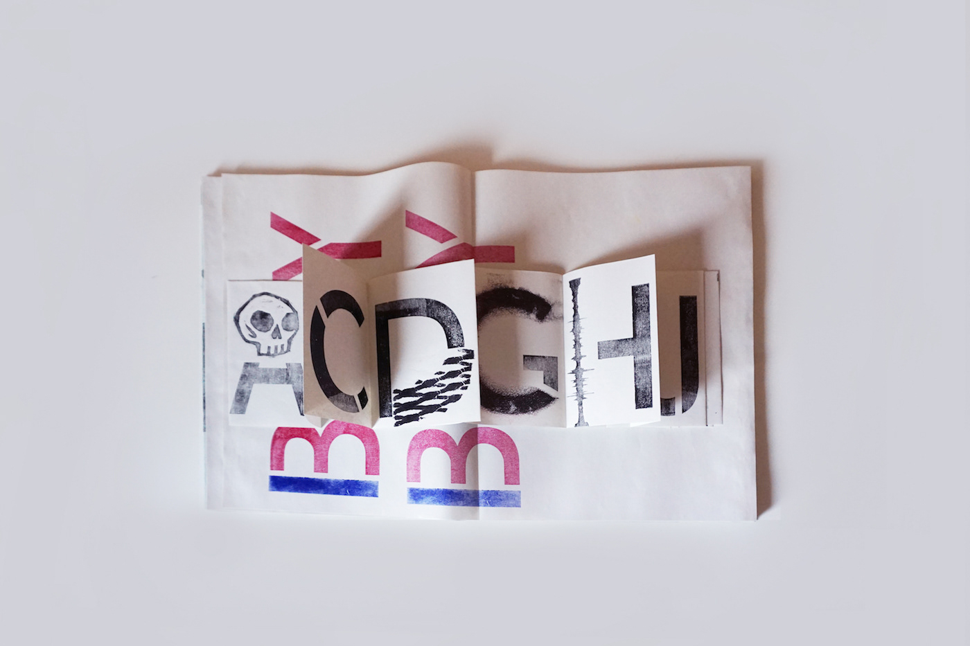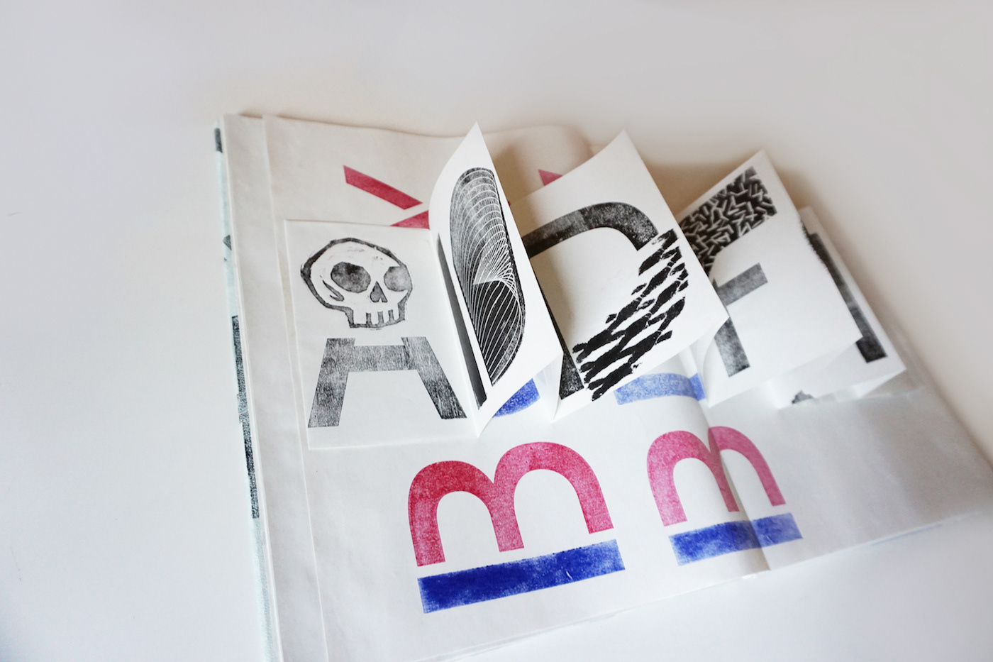 Technique : paper, wood, printing ink, ribbon, butterfly-fold binding